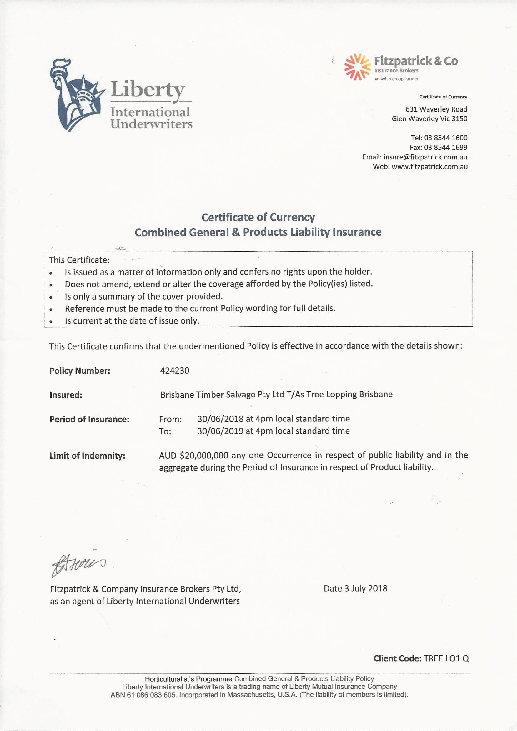 Were fully insured for up to $20million dollars, and pride ourselves on our prompt, professional service, safety, and care and respect of our customers property. Our policy is registered through Fitzpatric & Co Pty Ltd; our policy number is 424230.